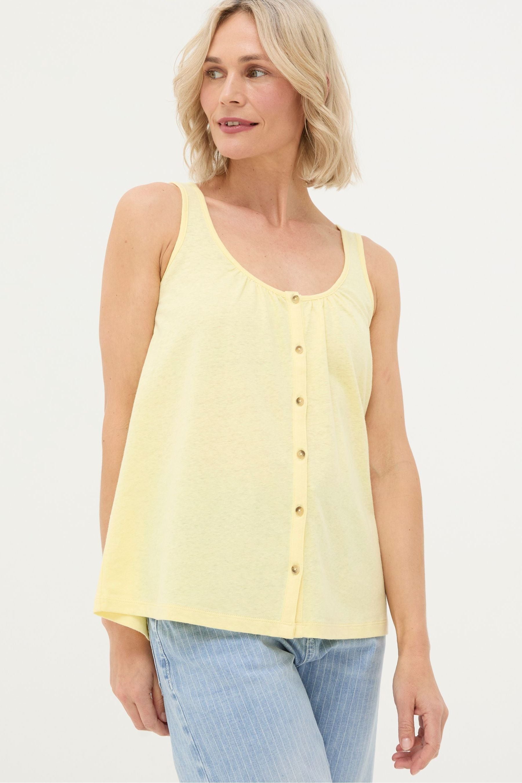 Fat Face Flora Yellow Cotton Linen Vest