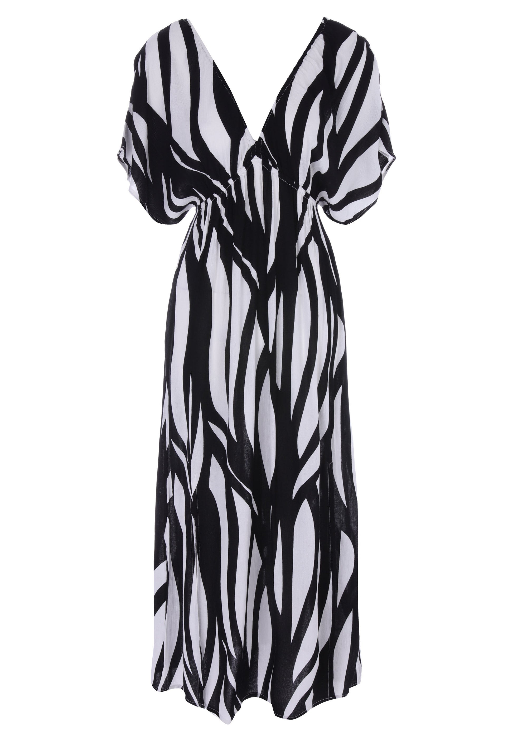 This flowing maxi dress is perfect for covering up in style! In a green and white pattern with a v-neckline, voluminous short sleeves and flattering empire line it will soon become your new favourite this season!