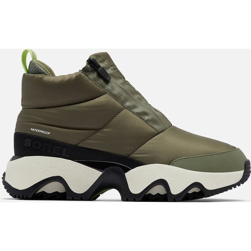 Sorel Kinetic Impact boots Black waterproof shell Pull tabs, reflective logos, rubber soles Designer colour: Stone Green/Black